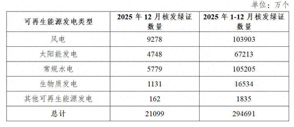 智通财经APP获悉,1月22日,国家能源局发布2025年12月全国可再生能源绿色电力证书核发及交易数据。2025年12月,国家能源局核发绿证2.11亿个,涉及可再生能源发电项目68.87万个,其中可交易绿证1.50亿个,占比71.32%。本期核发2025年11月可再生能源电量对应绿证1.85亿个,占比87.72%。2025年1-12月,国家能源局共计核发绿证29.47亿个,其中可交易绿证18.93亿个。