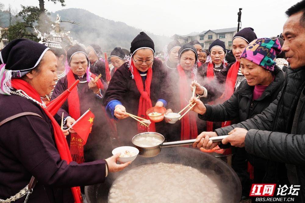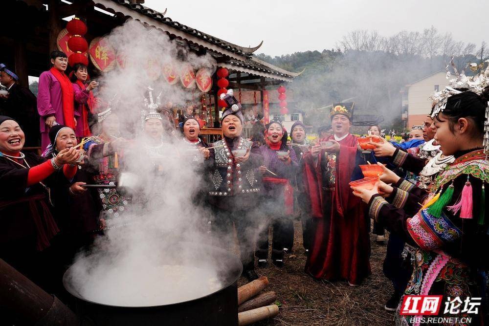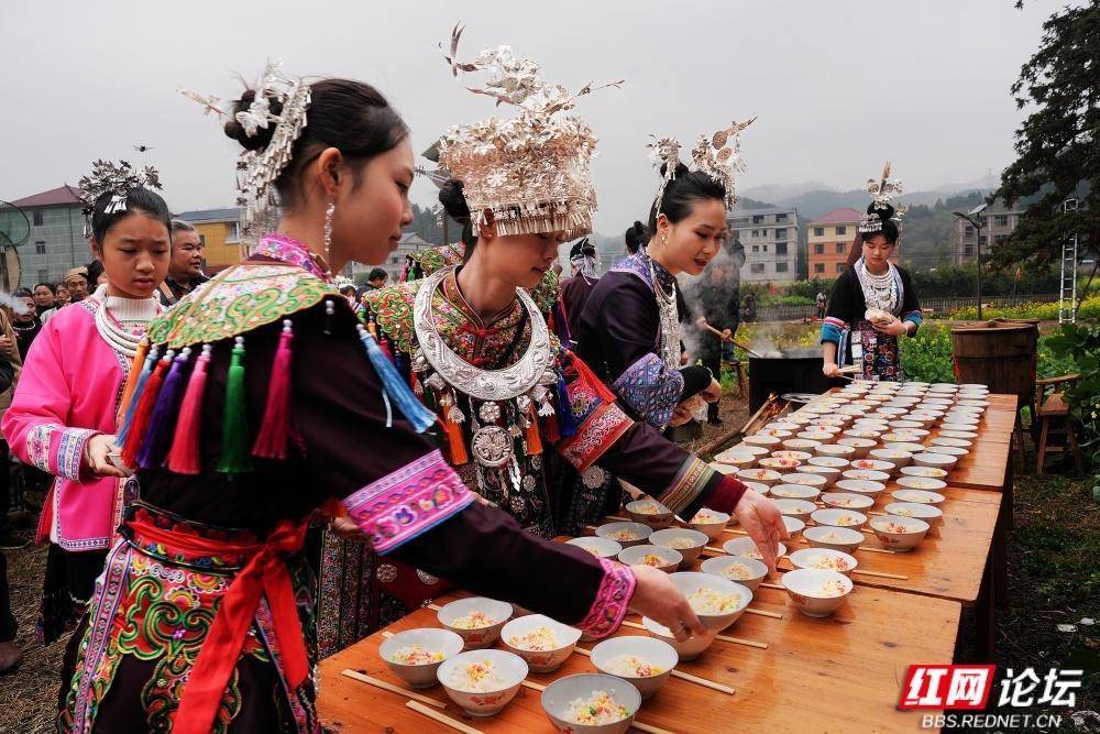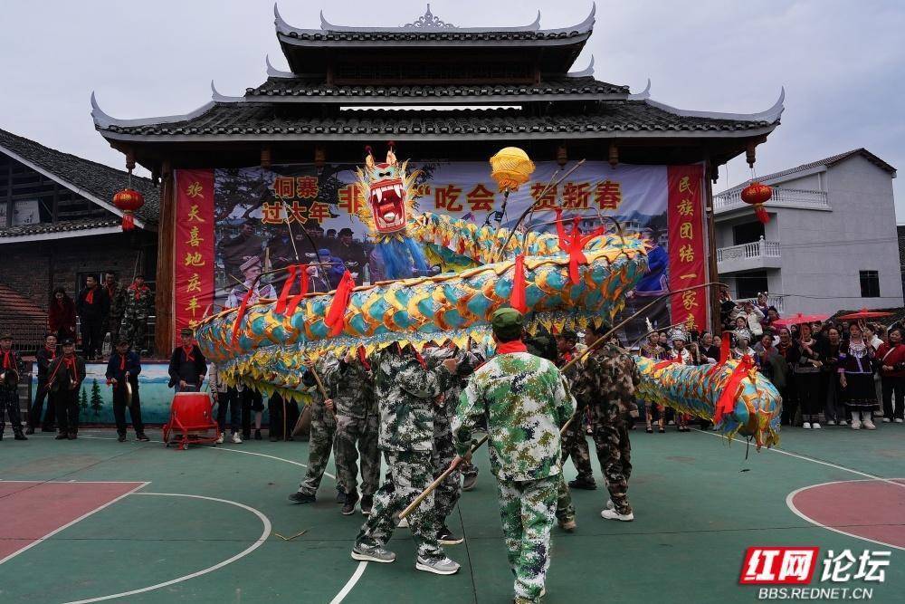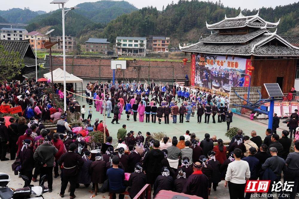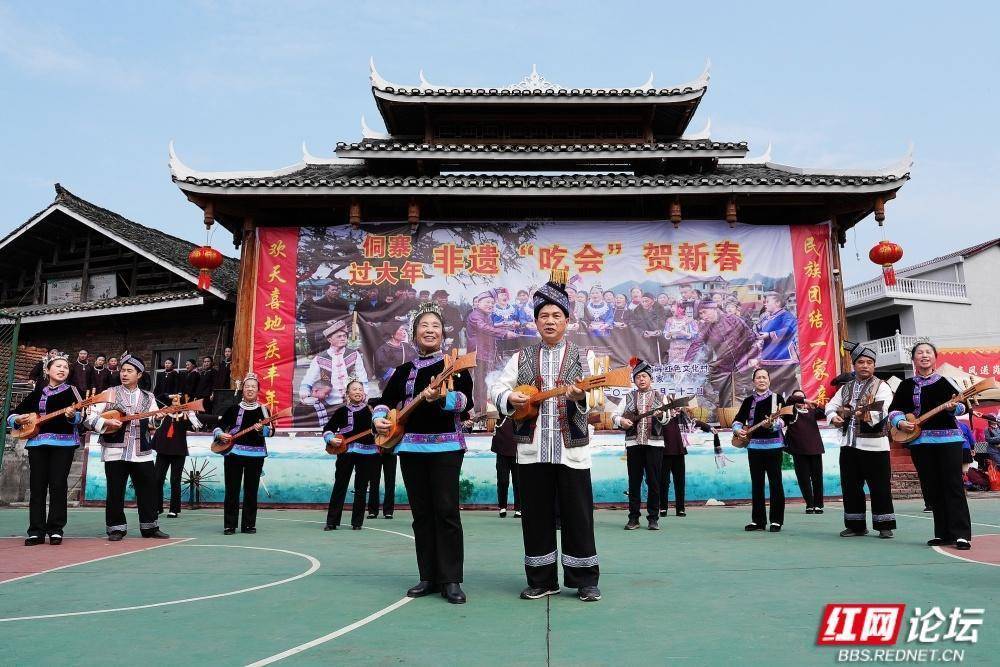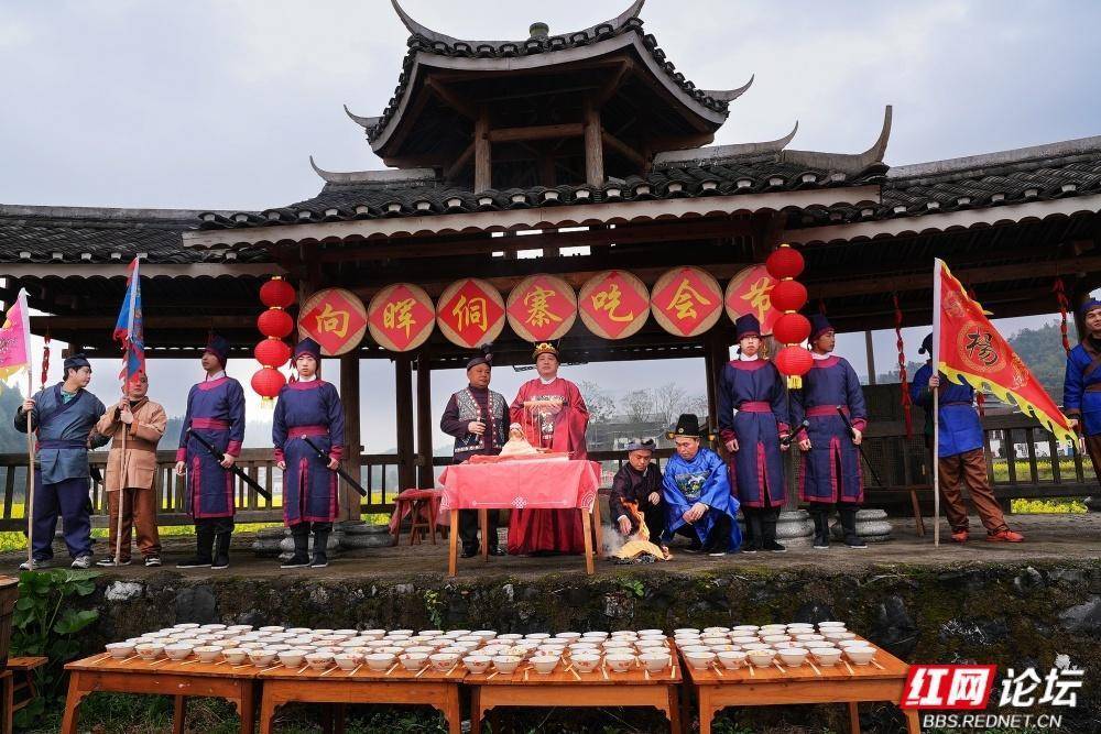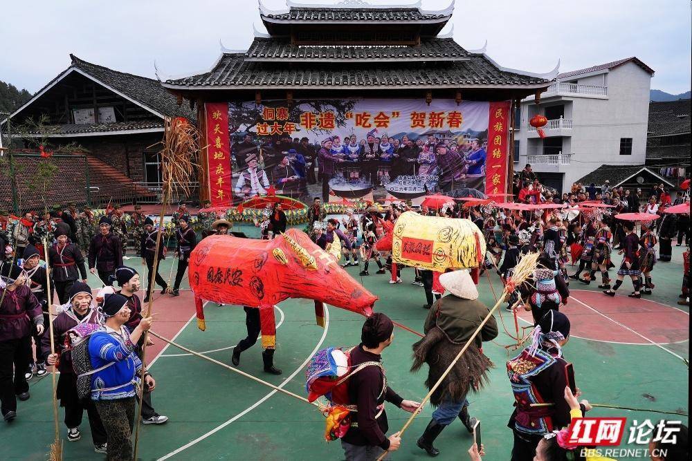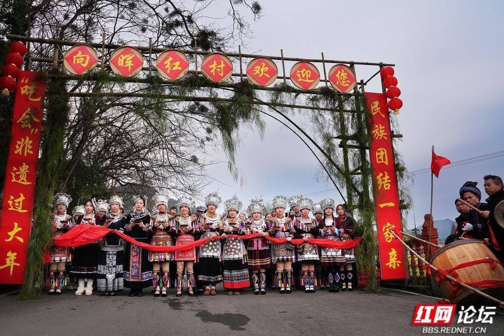通道地处湘桂黔三省交界,是侗、汉、苗、瑶等14个民族同胞的聚居地。“吃会节”传承至今,每年正月初六,十里八乡的村民汇聚一堂,开展“闹春牛”、哆耶等活动,延续民族团结传统。如今的向晖村通过民俗文化与红色旅游融合,吸引游客前来体验。