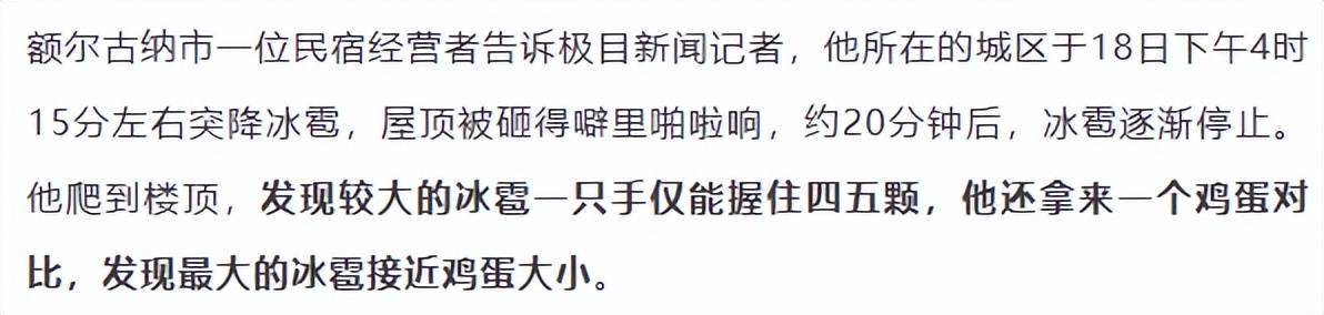 8月18日下午配资实盘证券配资门户,多个网络视频显示,内蒙古额尔古纳市突降冰雹。多名当地居民告诉极目新闻记者,冰雹持续了20分钟左右,最大的冰雹有鸡蛋那么大。