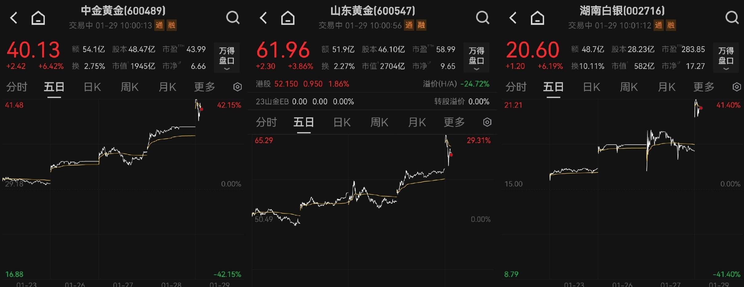 追涨个股吗?看看中金黄金、山东黄金、湖南白银的走势:波动剧烈,五日线上下翻飞,行情把握难度极高。对于大多数人而言,在波动中保持持仓定力本身就是巨大的挑战。这时,借道指数或许才是平衡“收益锐度”与“波动管理”的更优解。