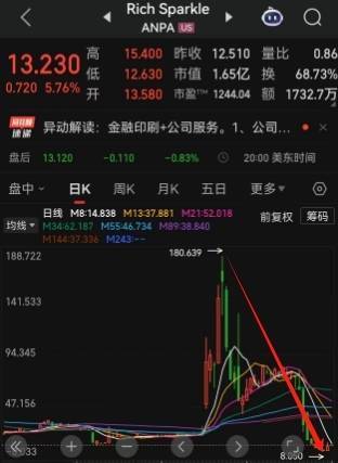 Rich Sparkle(ANPA) Holdings于2025年7月在纳斯达克(NDAQ)上市,发行价为4美元,此后前十证券公司该股上演惊天暴涨暴跌行情,2025年8月份攀升至50美元上方,2025年11月底跌破20美元。