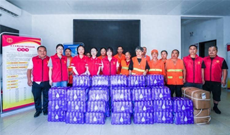 活动现场,志愿者们将一瓶瓶纯悦饮用水递到一线工作者手中,并叮嘱他们注意防暑降温。一位环卫工阿姨接过清凉物资后感动地说:“这么热的天气,能喝到清凉的饮用水,心里特别舒服,感谢你们的关心!”