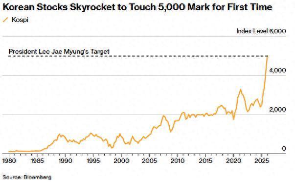 “这仅仅是个开始,”首尔Life Asset Management的首席投资官Kang DaeKwun表示,他预测Kospi可能在两个月内触及6000点。“Kospi尚未出现估值重估,这只是正常化。我认为5000点并不是一个过高的水平。”