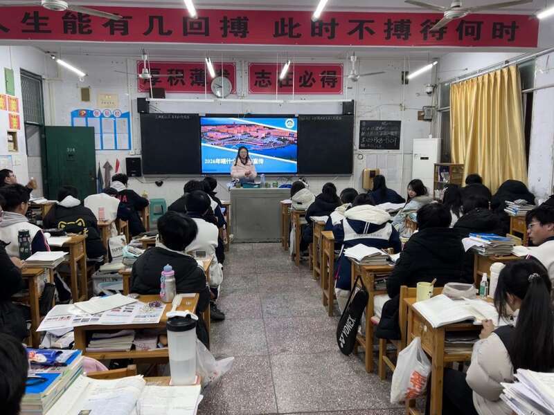 在射洪中学的教室里,实践队将喀什大学的区位优势,转化为一幅充满机遇的画卷:“这里不仅是古丝绸之路的重镇,更是‘一带一路’倡议下活力迸发的开放前沿。选择喀大,你的视野从祖国西陲直达世界。”实践队展示的不只是现代化的智慧教室与舒适的生活设施,更分享了校园里那些动人的身影:“银龄教师支援西部计划”退休后毅然西行,将毕生法学积淀倾注于边疆学,在喀什的讲台上继续燃烧教育理想……他们身体力行诠释“胡杨般的坚韧,红烛般的奉献”的喀大精神。