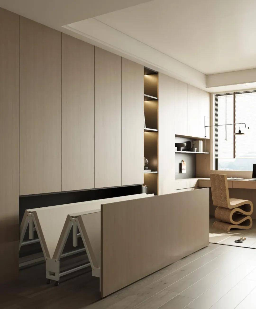 你要是担心未来要留宿,我教你一个万能招:折叠床!我在书房角落定了一张薄款折叠床,平时竖着放像块白板,需要时打开就是小床,一点不占地。