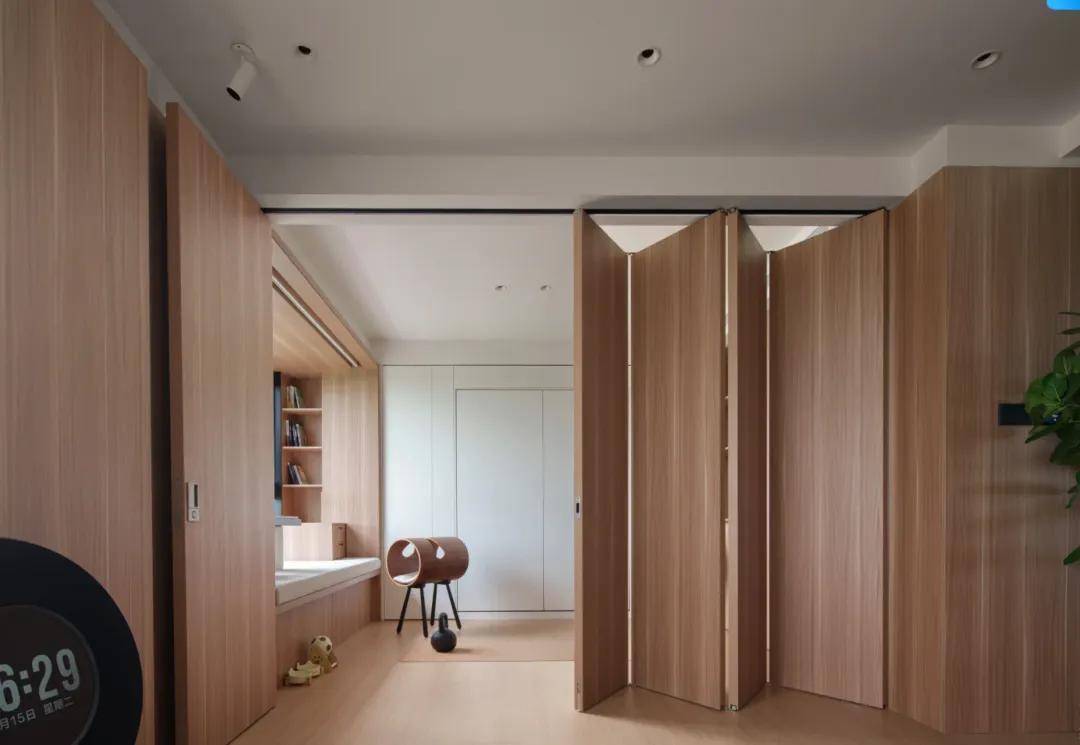 再加个折叠门,平时全开做大横厅,如果爸妈来,就轻轻一拉,这间房又能“复活”。