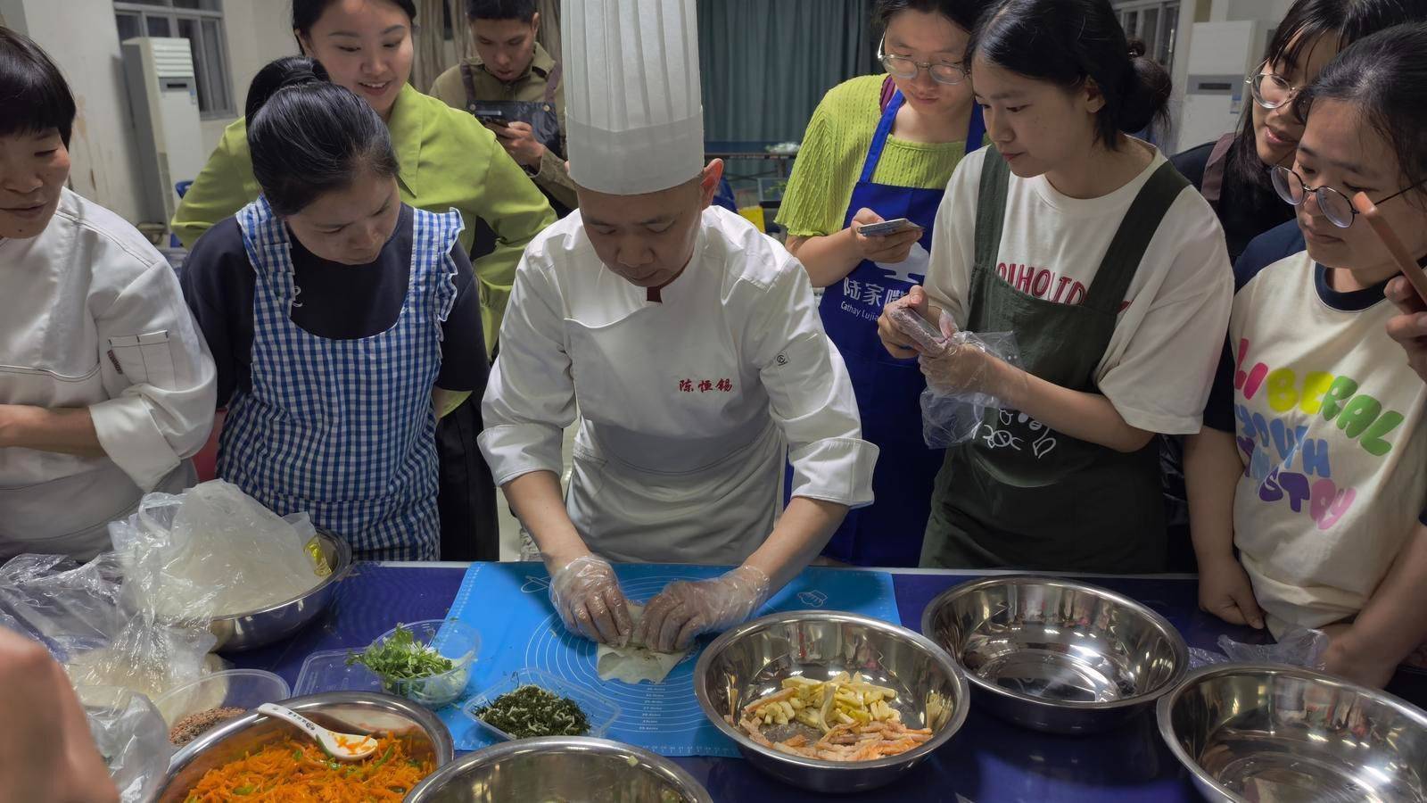 薄如蝉翼的饼皮裹上胡萝卜丝、海蛎煎等十余种馅料……在泉州市青少年宫的青年夜校教室里,烹饪大师陈恒锡正在指导青年学员制作闽南传统小吃润饼菜。学员李怡捧起成品说,青年夜校用家乡味道点亮业余生活,让自己感受到了泉州文化的温度。