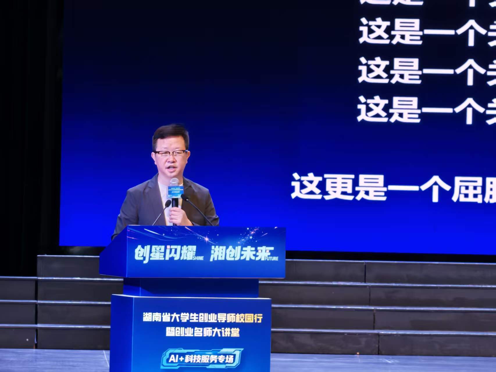 4月21日下午,“创星闪耀 湘创未来”湖南省大学生创业导师校园行暨创业名师大讲堂(AI+科技服务专场)活动在湘潭大学成功举办。湖南省委副秘书长、省支持大学生创业工作协调机制办公室主任王学武出席,湖南省科技厅厅长朱皖、湘潭大学党委书记刘静出席活动并致辞。